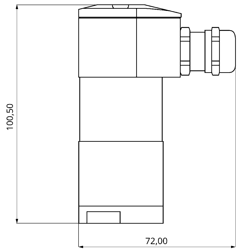 - Size without cable gland: 100.5 x 50 x 40 mm