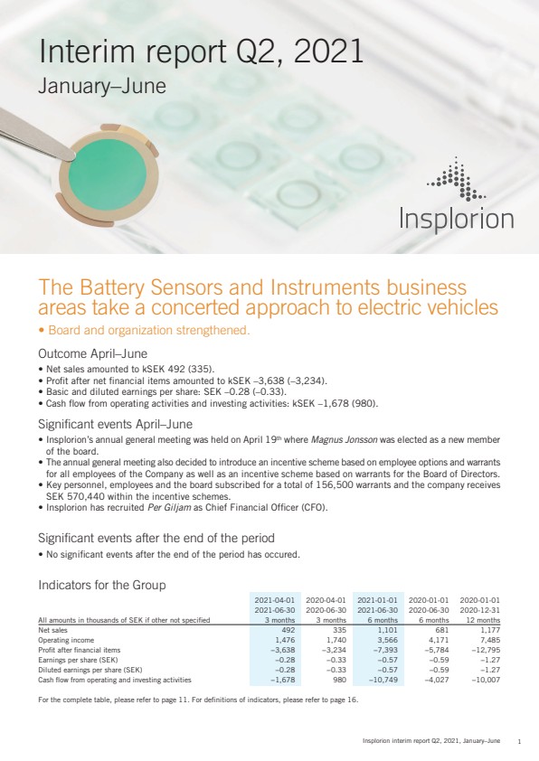 Finwire.tv: See CEO Patrik Dahlqvist comment and answer questions about the interim report at 5.00pm today August 25, 2021 at https://www.finwire.tv/webcast/insplorion/q2/
